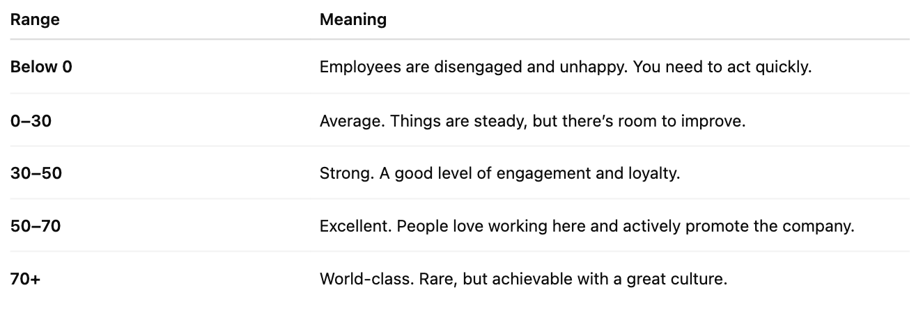 For context, here are some reported eNPS scores from real companies: