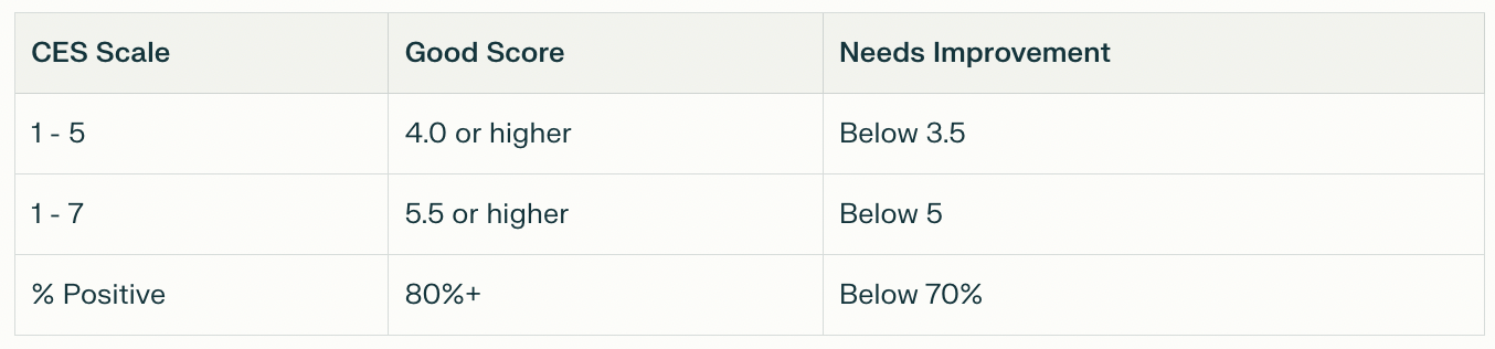 - E-commerce/Retail: CES can range between 5.1 (electronics) and 5.4 (fashion) on a 7-point scale.